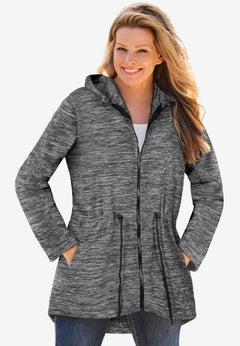 Searching for a jacket that you can count on to support your larger bust? We suggest going for an open-front style. They’re roomy and comfortable, but won’t leave you looking boxy. Longer coats are also especially flattering on your figure, creating the illusion of a more narrow frame.