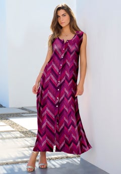 Featuring a flowy and feminine shape, maxi dresses add a touch of comfort to your wardrobe. To create a refined ensemble for work, wear yours with a solid-colored cardigan or vest and then stick to office-friendly shoes such as flats or low-stacked pumps.