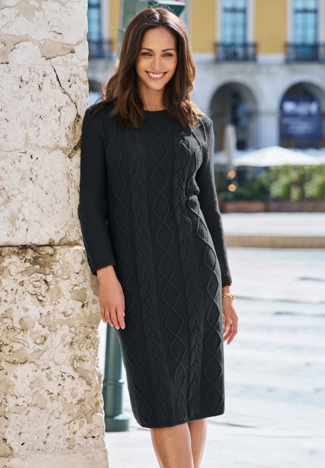 The simple-yet-sophisticated Jessica London women's plus size Cable Knit Sweater Dress makes transitioning into the colder seasons look easy. Designed in a comfy cable knit, this impeccably tailored silhouette incorporates key seasonal trends with classic, elegant style into a one-and-done outfit that loves your curves. Pair with riding boots or block-heeled booties for a look that always works.