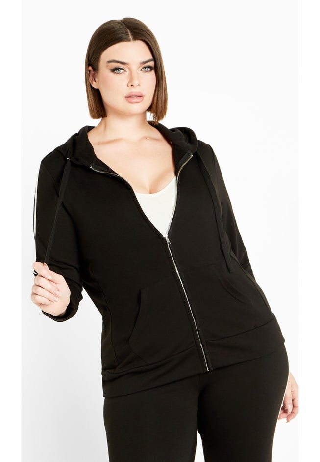 Sporty vibes meet street chic in the Double Stripe Jacket! It's all about the front zip closure, full-length sleeves, and those handy front functional pockets. Top it off with a hood featuring drawstrings and a hip-length hemline - this jacket is ready for your athleisure adventures.