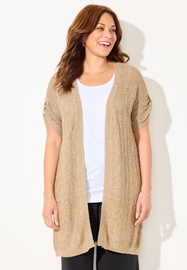 When the occasion calls for easy elegance, our Lurex cardigan provides the perfect spark of glamour. Besides a metallic shimmer, it has a relaxed drop shoulder, three-quarter length sleeves, an open front and side slits at the hem for a comfy fit and fluid movement. The beauty of this number is, it’s effortless and opulent at the same time.