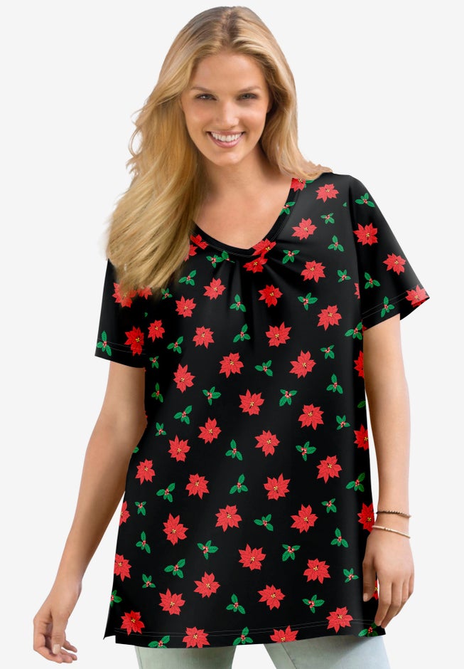 Perfect Printed Short-Sleeve Shirred V-Neck Tunic