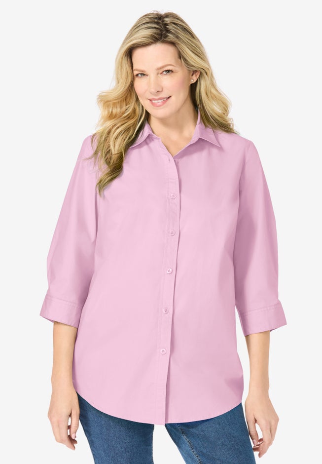 • Experience ultimate comfort with our best-loved perfect shirt, designed with a three quarter sleeve, relaxed fit and classic tunic length for comfortable coverage.