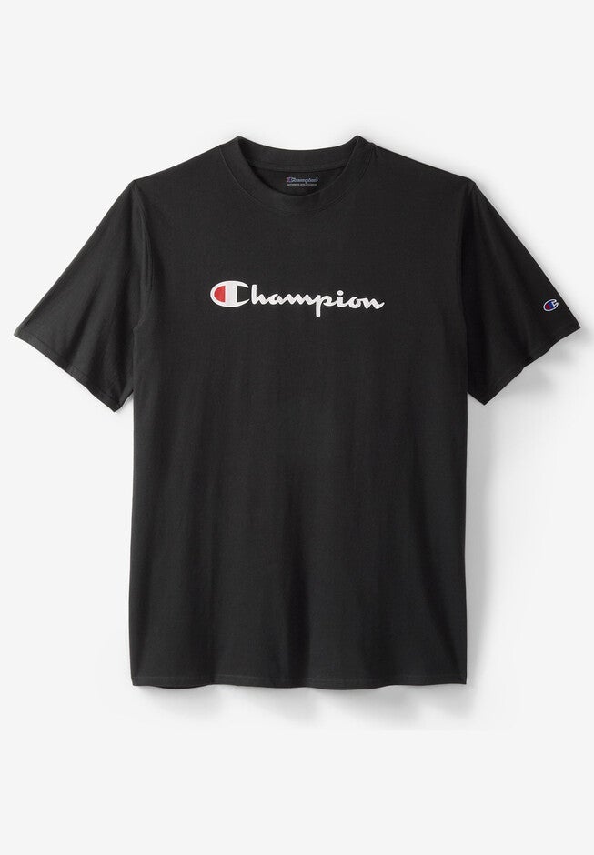 Get up and go in the Champion® Script Logo T-shirt! The big and tall short sleeve shirt is a casual, everyday option with plenty of room to move in. Versatile and easy to wear, this tee can be paired with jeans for going out or with sweats when you want to stay in. It's up to you how you wear and enjoy this relaxed fit big and tall Champion® t-shirt!