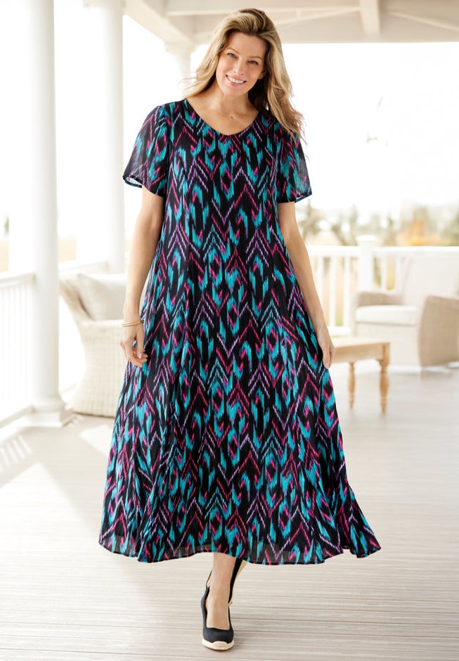 • Experience ultimate comfort with this texture-rich crinkle maxi dress, available in a variety of beautiful prints.