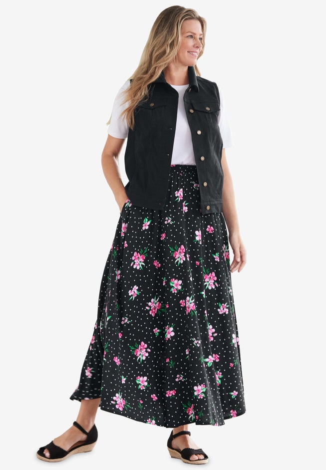 Layer-up in denim all year in our classic stretch vest. The perfect cover-up for fair weather, never too warm or cool. Our plus size jean vest has the best stretch fit you'll ever wear. Made with classic flap chest pockets with button closures.