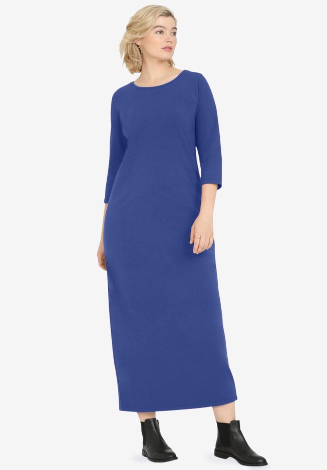 A casual closet staple, this knit maxi dress is a must-have for any well-rounded wardrobe. Crafted from lightweight cotton/spandex jersey with the perfect amount of stretch to be flexible without losing its shape. Pair it with ankle boots and a leather jacket for an edgy look or dress it up with pumps and a clutch—the styling possibilities are endless.