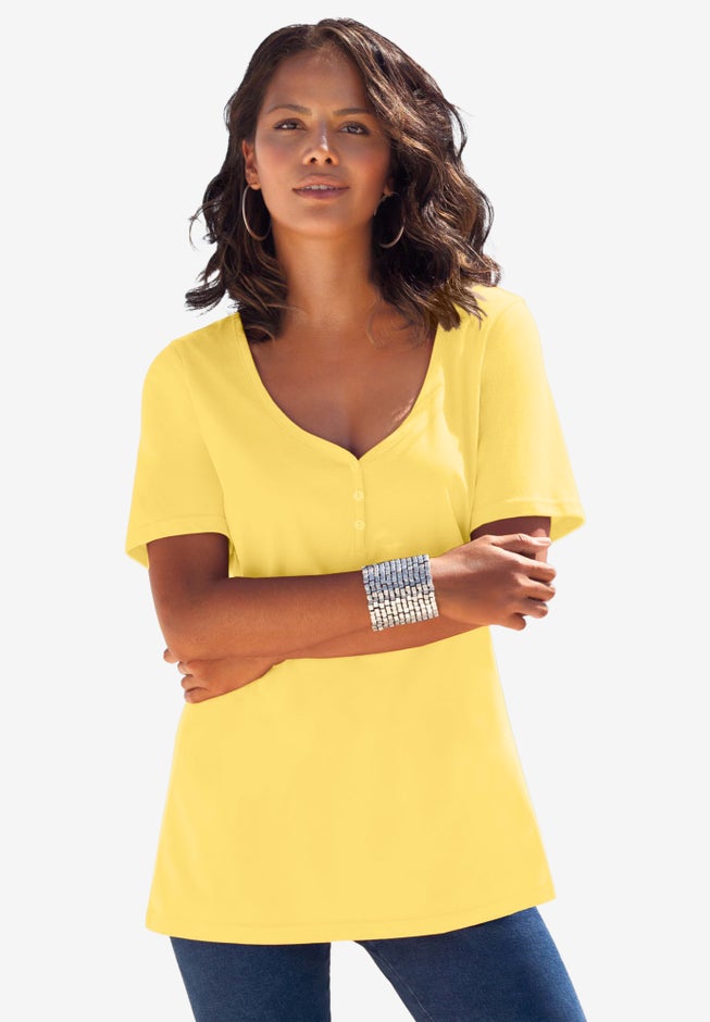 The ultimate feminine tee, with a pretty sweetheart neckline and three-button henley detail. Part of our Ultimate Collection, the tees you simply can’t live without. Every soft and stylish tee comfortably glides over curves and feels divine to wear. Made in a pure cotton knit that wears and washes beautifully, our fits are designed to flow and never cling. Look for the pretty details that make each one special.