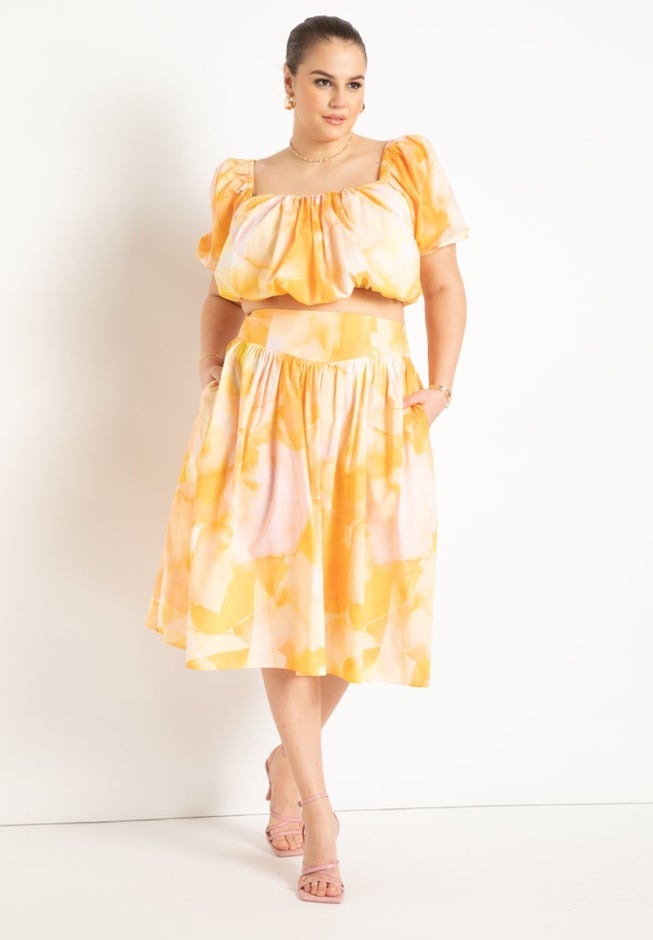 Yoke Detail Gathered Midi Skirt